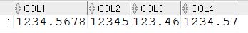VALUES(1234.5678, 12345.12, 123.456, 1234.56789);